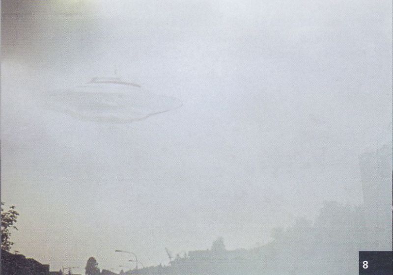 20th May, 1975 at 15:00. Beamship of Semjase over the Wihaldenstrasse in the north in Hinwil, Switzerland. The ship is semi-transparent. The proximity of the vessel and its vibrations may have affected the quality of the film.[1]